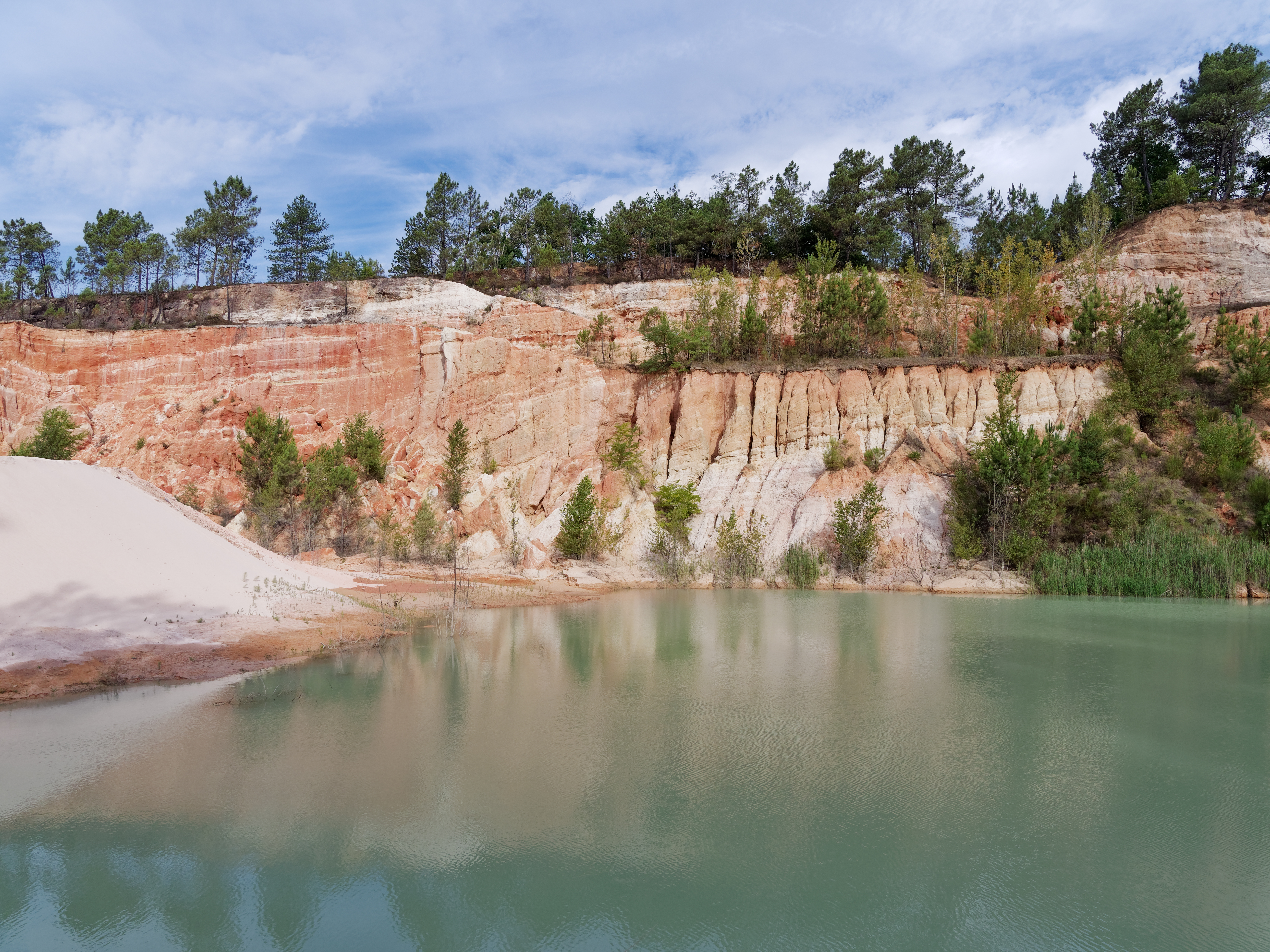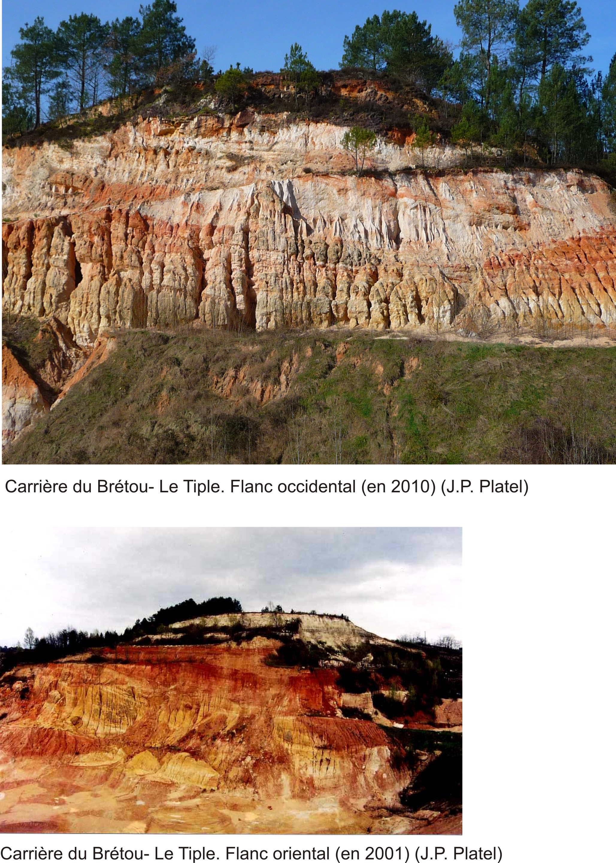 Très grande carrière partiellement abandonnée (en eau) d'argile kaolinique, et haute coupe verticale de plus de 60 m de série.
